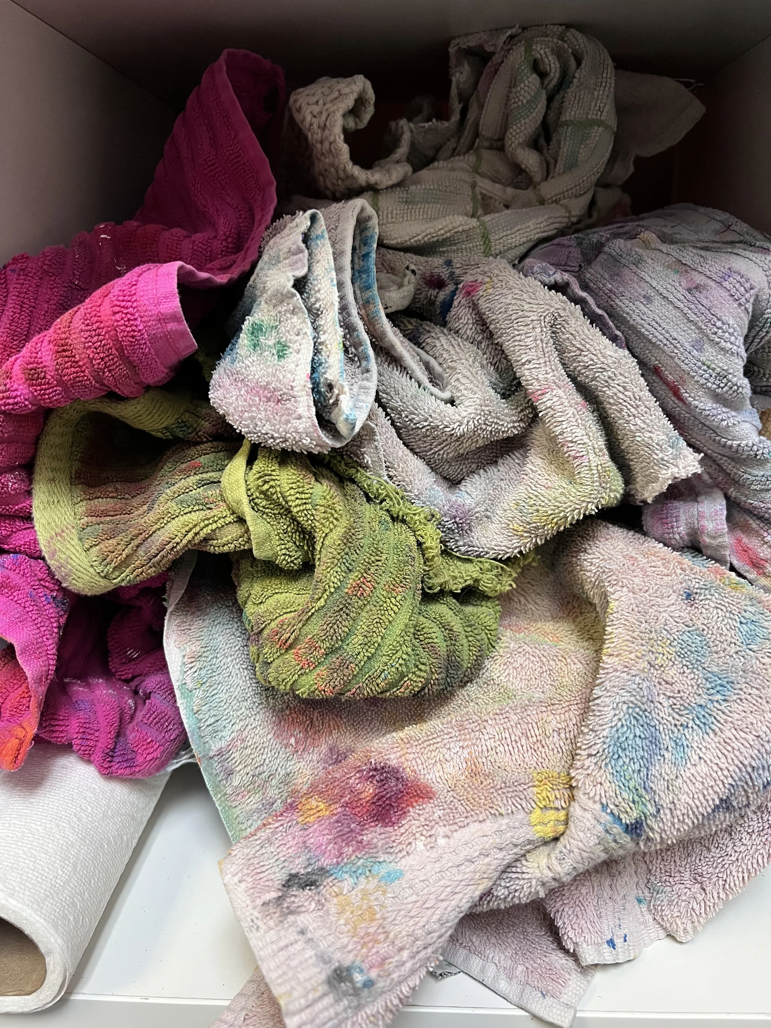 Simply your best friend for clean up, rubbing out marks you want to change and catching drippy paint.  I keep old towels and t-shirts for this purpose.